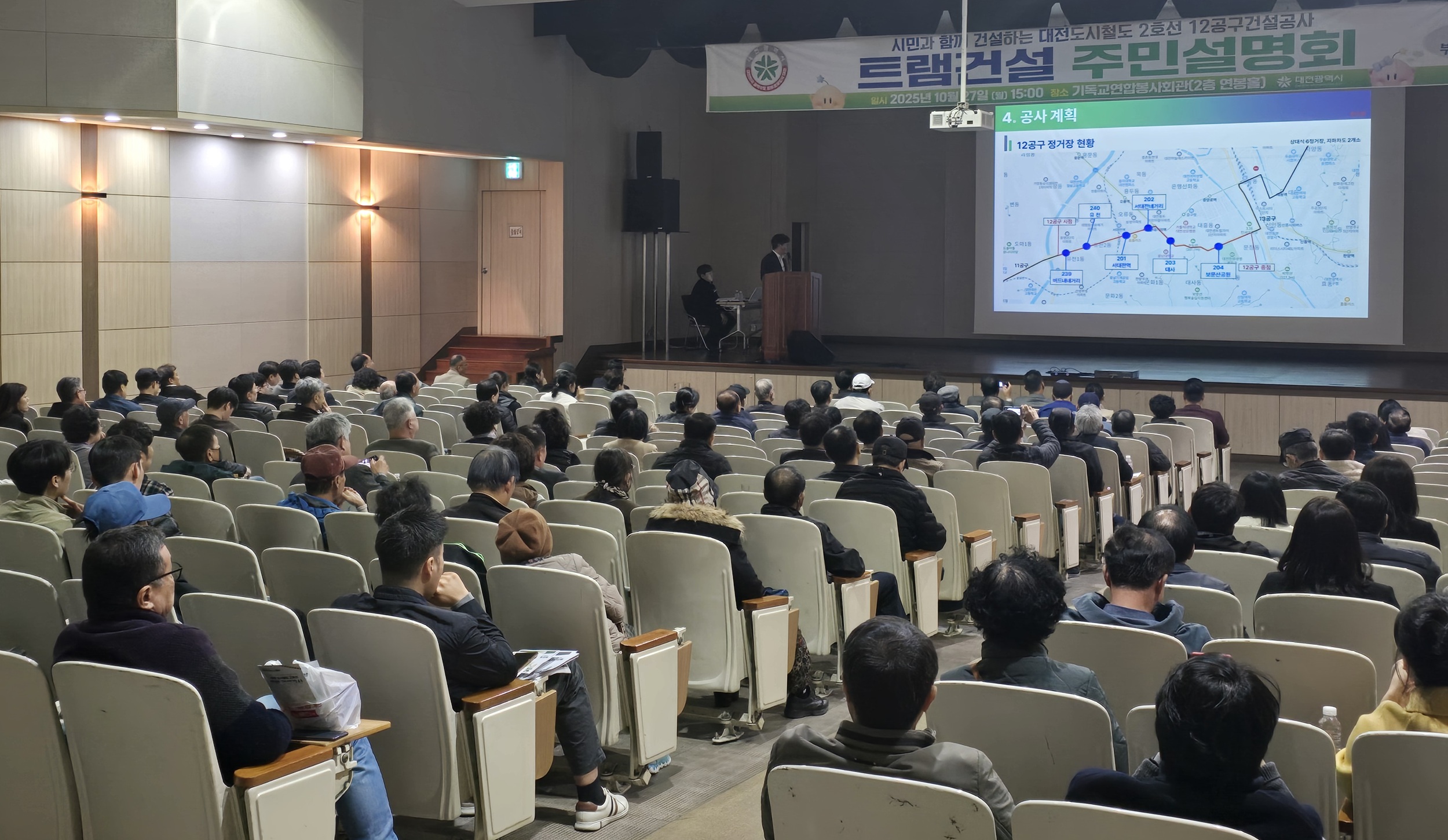 대전시는 27일 오후 3시, 기독교연합봉사회관에서 도시철도 2호선 12공구 건설공사와 관련한 주민설명회를 성황리에 개최했다. 설명회에는 약 300여 명의 지역 주민들이 참석해 높은 관심과 참여를 보였다.