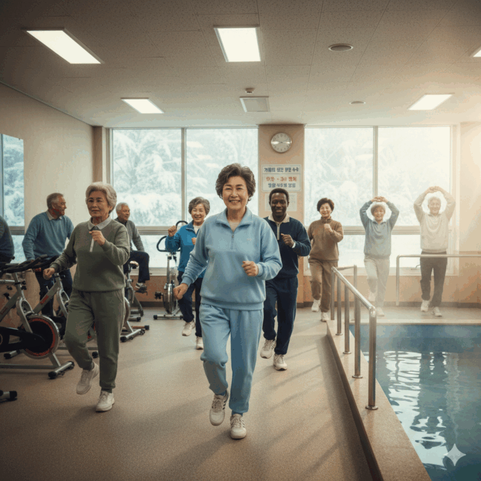 실내 평지 걷기 및 실내 자전거: 가장 권장되는 방법입니다. 외부의 찬 공기에 노출되지 않으면서도 꾸준히 심박수를 올릴 수 있습니다. 실내 자전거는 무릎 관절에 무리를 주지 않으면서 하체 근력을 강화하는 데 탁월합니다.